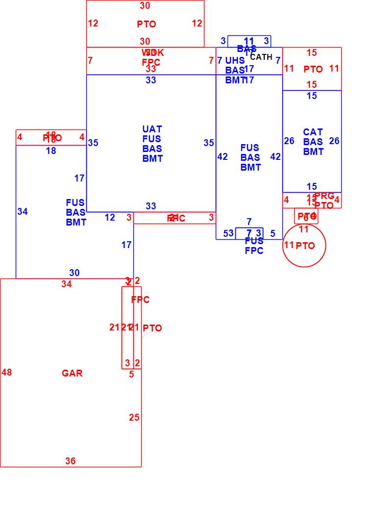 | CLP | Loading Platform | GRN | Greenhouse | UHS | Half Story (Unfinished) |