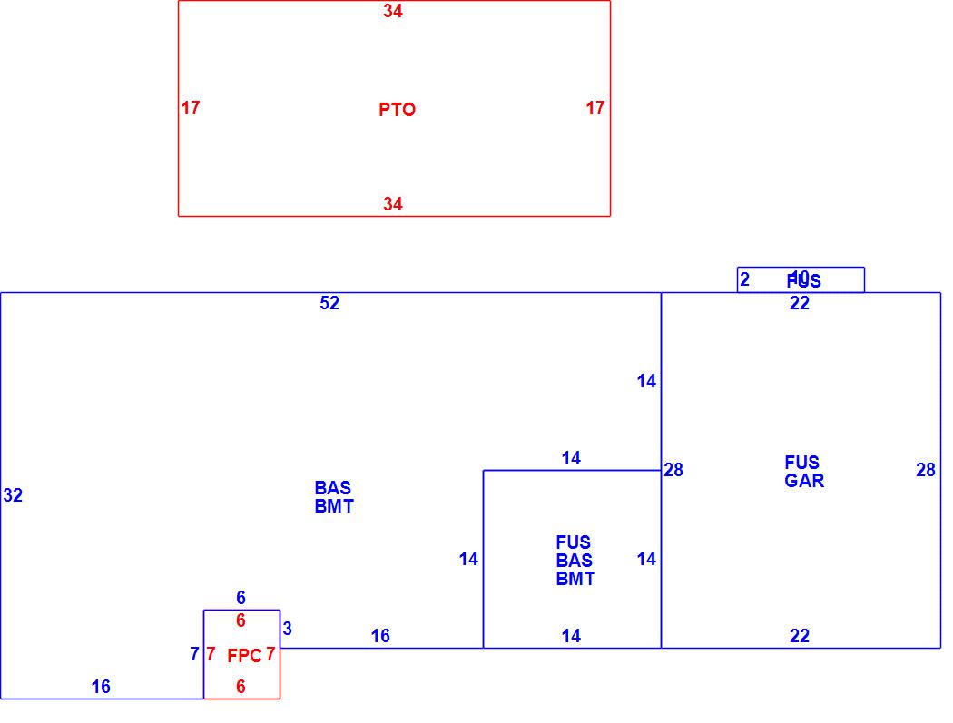 | CLP | Loading Platform | GRN | Greenhouse | UHS | Half Story (Unfinished) |